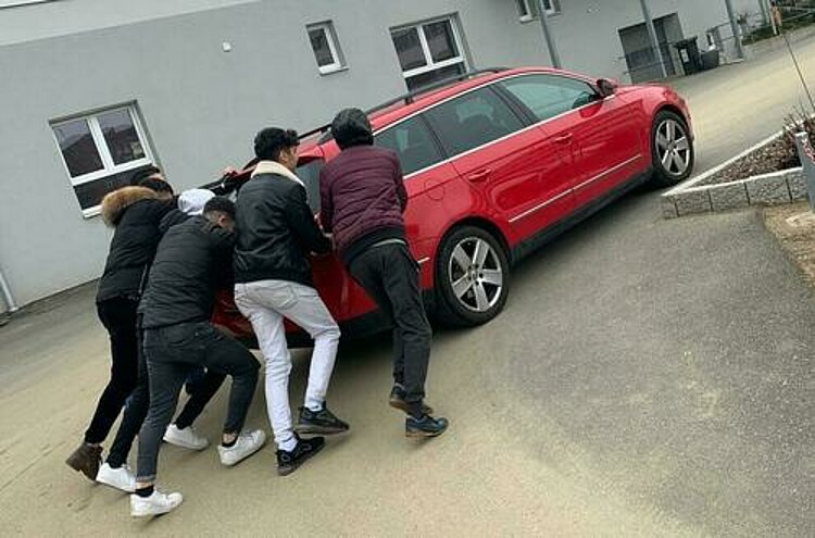 Ein schönes Beispiel des heutigen Tages zeigt dies deutlich: Ist die Batterie leer und das Auto springt nicht mehr an? Die hilfsbereite Werkstattschule ist schon zur Stelle und leistet sofortige Anschubhilfe.